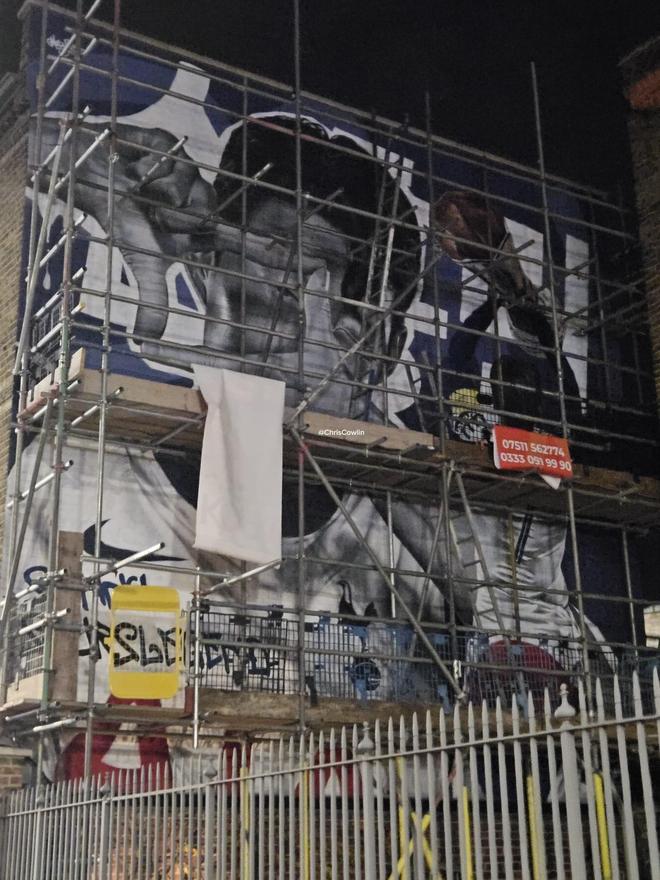为欢迎孙兴慜的回归,热刺为孙兴慜在街头绘制比赛,现在壁画已经被球迷拍到,据悉,当地时间12月9日英超日报这幅壁画将完工,而画面中是孙兴慜的经典庆祝动作+捧起欧联杯冠军。