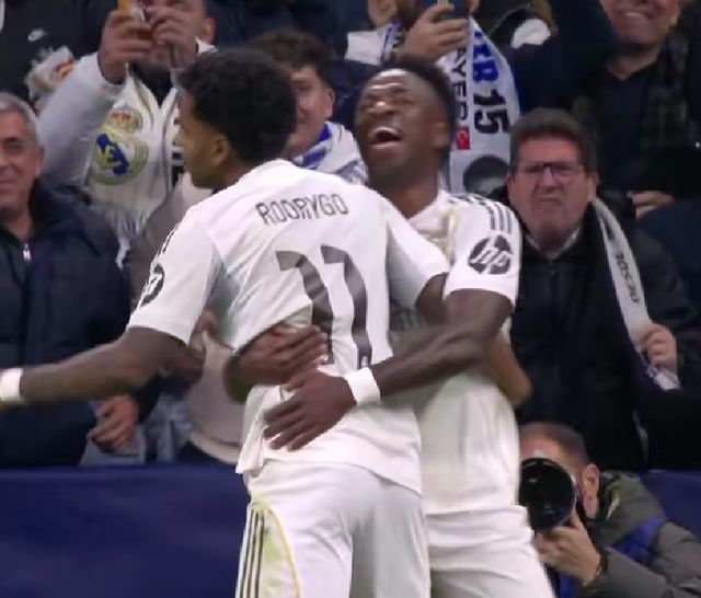 话说回来,罗德里戈也确实争气。在这场焦点大战中,上半场第28分钟,皇马率先破门,而进球的人正是罗德里戈。当时皇马反击,贝林厄姆斜塞找到右路的罗德里戈,后者带球杀进禁区,最终小角度推射远角破门。